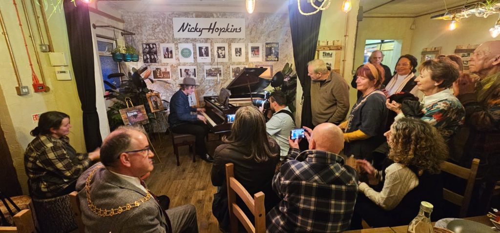 On 25 January 2026, residents and music fans in Perivale gathered for the opening of the Nicky Hopkins Piano Room at Pear Tree Park Bistro. The space was officially opened by the Mayor of Ealing, Cllr. Anthony Kelly. Guests included Cllr. Tariq Mahmood and Paddy Milner (pianist for Sir Tom Jones and Van Morrison), who played a selection of Nicky’s compositions and is also featured in the documentary.